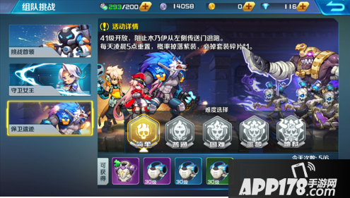 当然,大家辛苦的战斗也是有着极佳的回报,组队挑战是游戏中获取装备的一个重要途径。挑战首领会掉落项链,守卫女王掉落护镜,保卫遗迹则是会给我们提供衣服。同一个关卡也是会分为简单、普通、困难、噩梦以及极限难度,不同的难度也意味着更高级的掉落的装备。难度与收获完全是成正比的哦!