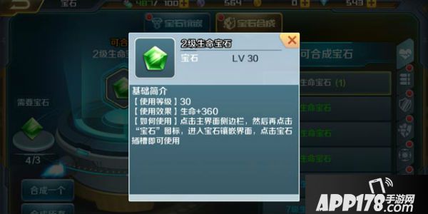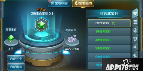 那么我们怎样才能升级呢?在合成界面,我们消耗3颗同一等级的宝石和一些银币,就可以获得一颗高一个等级的宝石了,可以直接合成,方法简单。不过当宝石的等级提升到6级时,宝石的合成就需要等级的要求了,6、7级宝石的合成需要40级才能开启,从8级宝石开始,就需要50级才能开启了。这样的设定,让土豪玩家可能没那么容易一飞冲天,给了我们许多机会。