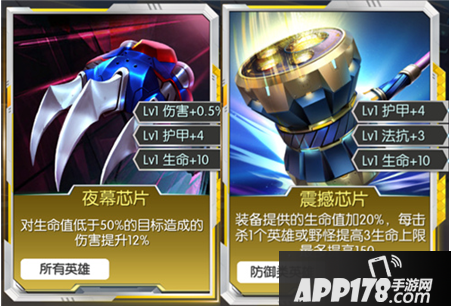 因为狮子座属于前排突进英雄,所以防御型和物理型的芯片都可以选择。这里推荐夜幕芯片和咆哮芯片。