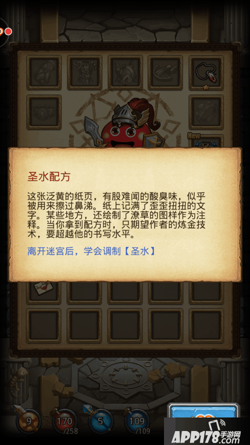 当进入地下迷宫之后,就是典型的Roguelike玩法了,通过翻开石板会来找到通往下一层的钥匙,每一块石板下所出现的东西都是完全随机的,玩家们可以得到各式道具、装备,同样也需要击败不同的怪物,不过探险期间得到的道具和装备都是带不出来的。最初的怪物看起来都很弱鸡,似乎只要不断无脑点点点就可以轻松通关。因此对于大部分玩家来说,游戏开局都非常容易上手,甚至会感到有些无聊。