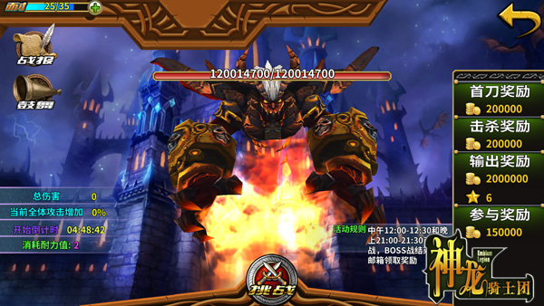 巨大的恶魔首领,将在每日制定时间开启讨伐。这是一个世界首领,只有靠着全服玩家之力才可能击败他。如果成功击杀恶魔,那么参与本次活动的玩家将会获得巨额的奖赏,你在本场战斗中的输出也会被自动记录下,你的壮举将会被所有玩家铭记于心。