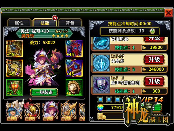 想快速的融入进《神龙骑士团》的世界中的话,选择好一个正确的英雄是一件非常重要的事情。如何用最快捷的方式,迅速的将一个英雄培养起来,这一点至关重要。在这里向大家推荐一位法系英雄妮可,她不但有着强大的法系攻击力,而且还能使用大范围的控制技能,可以说是前期一名超级强力的英雄。
