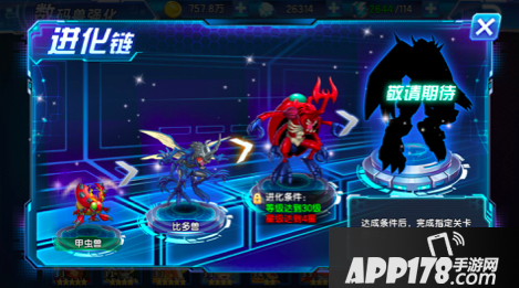 没错,看了上图,友友们肯定知道了,上面便是游戏数码兽进化变身的进化链,有没有很酷炫?每次达到进化提交,完成进化任务即可变身哦!