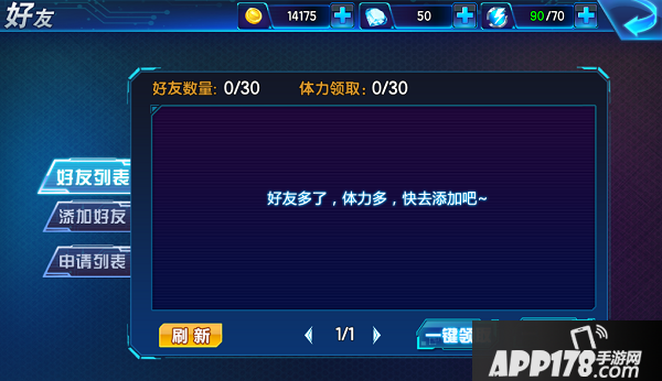 点进去以后,我们就会发现,其实游戏中的好友系统并不是我们想的那么简单。里面有好友列表,有添加好友,还有一个申请列表。玩家们想加对方的话,就点添加好友就行了,如果是别人加你的话,申请回直接放在申请列表里面哟。