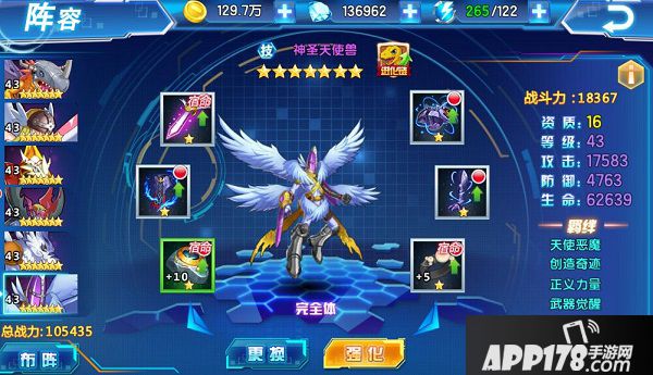 每次达到进化提交,完成进化任务即可变身哦!当然作为一个出厂4星的数码兽,很容易就进化到了神圣天使兽