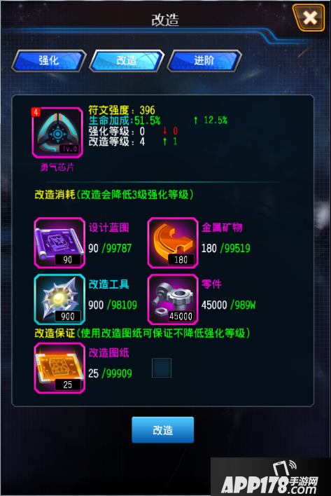 改造1次,需降低3级强化等级(使用道具可避免降低);