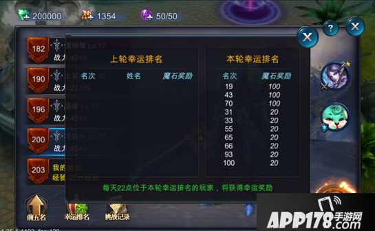 每天都会刷出一批幸运排名,玩家只要在结算的时候属于该排名,则可以获得额外的魔石奖励。而且这些排名分布较广,也不会因为排名靠后就没有机会了。