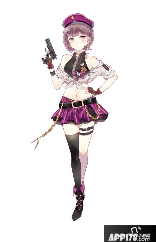 画师在设计时,为了贴近92式的性格,赋予了她简洁清爽的装扮。同时外观上又有点偶像女团的制服感,暗示她的名门出身。在帽徽和耳环上都用了五星元素。92式的服装配色也相当魔性,粉色和紫色的搭配非常抢眼。