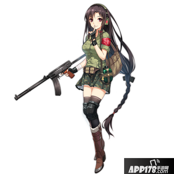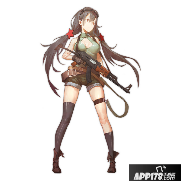 《少女前线》中的56-1式,是几把国产枪中唯一一把四星的武器。为了凸显56-1与AK47的渊源,画师在设计56-1时采用了和AK-47相近的配色方案,同时加入了很多中国元素。比如旗袍领、红星头饰,和长短袜上的花纹——单发和连发模式调节,军用的武装带也很有PLA的风范。