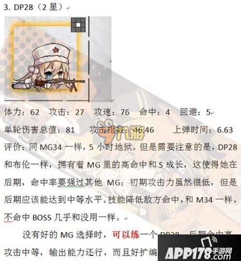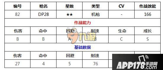 以上就是今天APP178手游小编为大家带来的少女前线DP28枪娘建造公式图鉴,不知道各位小伙伴们是否都已经学会了呢?平民玩家在选择2星枪娘的时候,也可以选择这款,但是要注重后期的培养,想要了解更多精彩内容,敬请关注APP178手游少女前线官网。