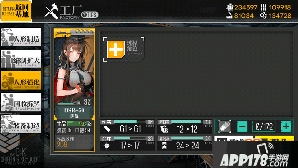 战斗之外,后勤的部分也是必不可少的。在这方面《少前》比较完整地借鉴了《舰C》的模式,在游戏中玩家可以自由分配四项资源以及资材来尝试获取新的角色,也就是进行所谓的“大建”,四项资源会随时间自动回复或者是玩家进行后勤工作来获取。对于已经获取的角色玩家可以通过升级强化改造等来提高其战斗效率。其实这部分说白了就是一个类似于模拟经营与角色培养相结合的游戏模式,玩家在确保资源足够维持游戏进行的同时培养增强角色实力,最终培养的成效体现在战斗中。