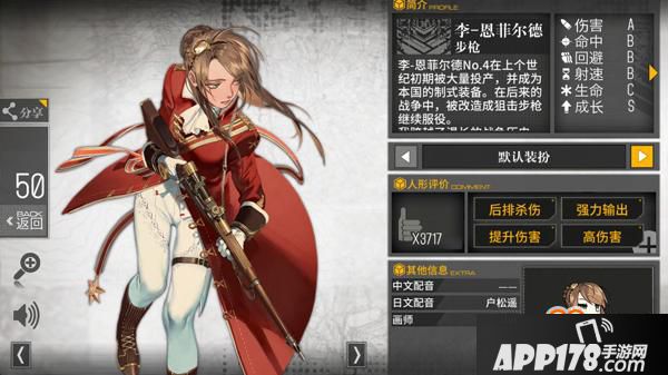 作为一款二次元类型手游,漂亮的角色和人物设计自然是相当重要的。(试着想象一下用《卡德洞窟》的画风与动漫美少女结合?)《少女前线》的一部分相当用心的角色设计是其亮点之一,举个例子:游戏中的战术人形李恩菲尔德,这一系列的步枪是18世纪由詹姆斯?帕里斯?李设计的李氏枪机结构和恩菲尔德皇家兵工厂制造的枪管结合,因此这位人形的服饰设计中外套和衬衣都是根据十八世纪的英军军装进行再设计,绶带也是结合了英国国旗上的蓝红白三色来设计。每位人形除了立绘还有二头身的Q版形象搭配各不相同的各种动作,如此细致的设计能给玩家带来惊喜,也足以证明《少前》在美术方面的用心之深切。