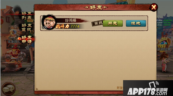 玩家可以通过好友申请来查看别人添加自己为好友的申请,可选择同意或拒绝。