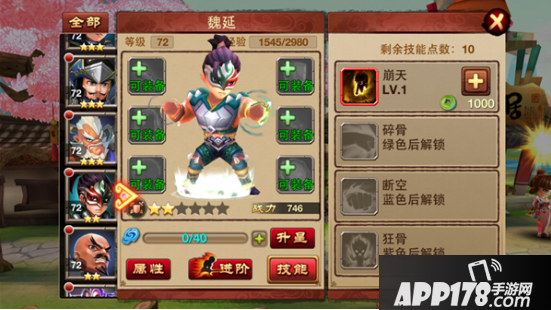 魏延作为前排肉盾,可以降低敌人的攻击,同时第四个技能也是提升双防的。可以说还是值得练的武将。
