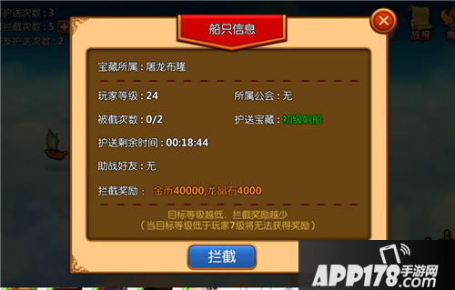 2.每日可护送3次宝藏,可拦截其他玩家5次,可协助好友护送2次