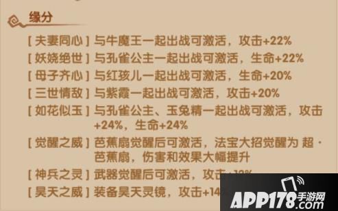 夫妻同心:与牛魔王一起出战可激活,攻击+22%