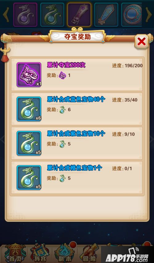 6、夺取宝物的次数越多,可以领取的奖励也就越多,奖励有紫色的宝物碎片,还有大量的经验宝物,非常丰厚呢。