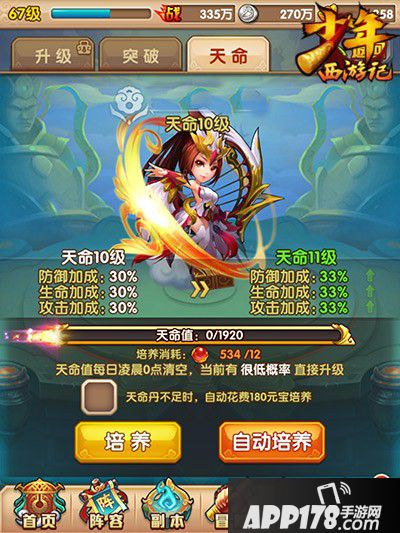 神将通过吞噬其他小兵或蟠桃获得经验,提升神将等级,获属性收益