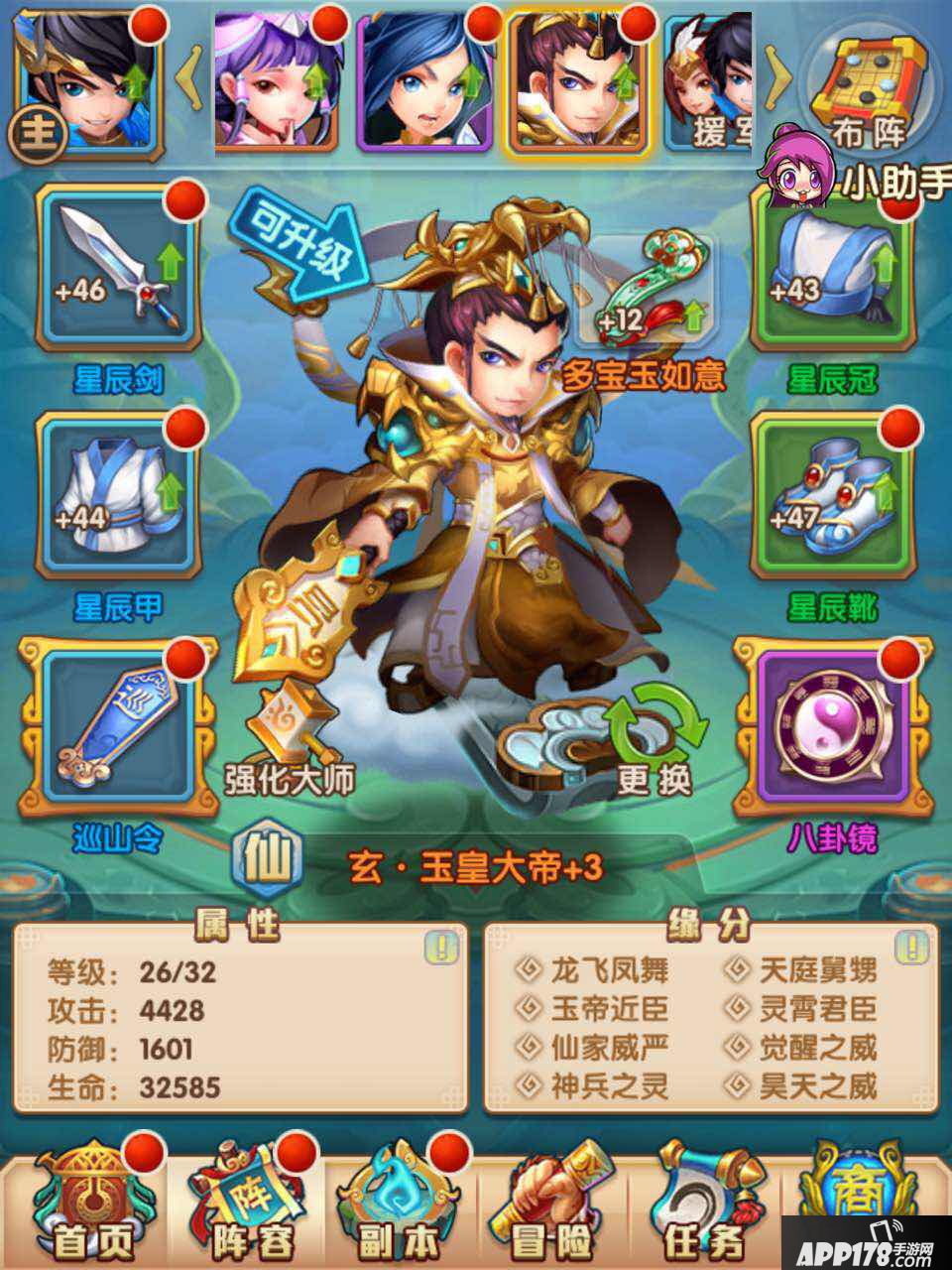 游戏和传统的卡牌并无什么区别,依然是收集强力神将,提升神将装备,法宝属性,根据不同神将属性技能合理搭配打败对手。操作也非常简单,战斗前调整好阵容,只需要选择战斗,全程无需动手,自动战斗。