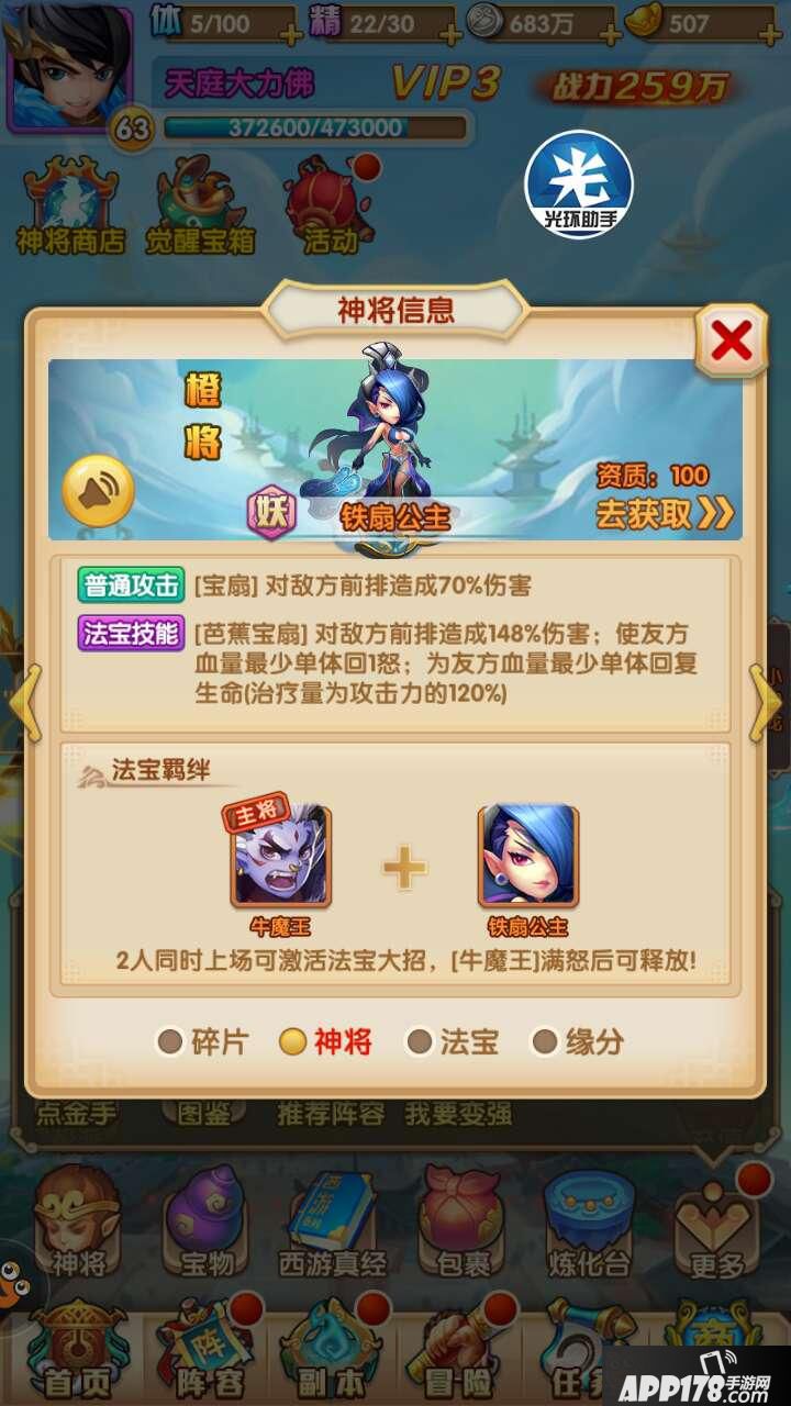 综合分析:铁扇公主不管是技能还是突破都是一张不可多得的好卡,配合牛魔王放大招。