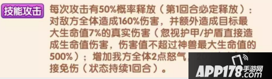 ◆ 饕餮的技能“吞噬天地”将对敌方全体造成群体伤害加上百分比真实伤害!当然还有增加我方全体怒气的基本操作,同时还有可观的攻击与直接免伤属性。