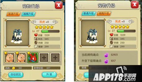 魂魄升级:宠物需拥有一定数量的魂魄才能允许升级,魂魄升级将消耗一定数量的石币,并相应获得同数量的经验。可通过副本战斗掉落魂魄