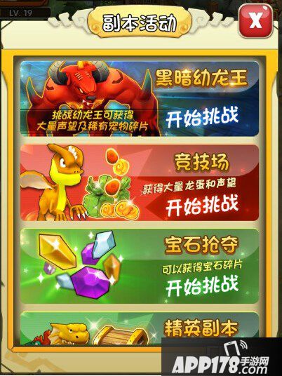 当玩家角色提升至10级时,就可通过主界面中“副本”键进入“副本活动”列表,从列表中就可以选择进入竞技场参加活动了。竞技场活动奖励相当丰厚,历史最高排名奖励中有高品质装备,声望奖励可以用来在声望商城换取各种珍稀道具、碎片,每日21:00发放竞技排名奖励中还会有龙蛋发放,当日排名越高奖励就越丰厚哦~