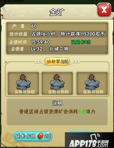 在占领矿藏点后,玩家需要对其守护8小时完成开采。玩家最多可同时占领两个矿藏点,如果占领期间,未被其他玩家抢占,即可在邮件中提取本次占矿的全额奖励了。另外,玩家在占领期间,还可以消耗龙蛋延长占领开采时间,从而增加本次占矿开采的累计石币收益。