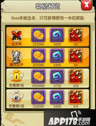活动内容:每日晚上21点开启攻打世界BOSS,挑战即可获得大量石币和声望,击杀BOSS更有额外奖励掉落。