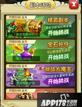 玩家可通过主界面中“副本”键进入“副本活动”列表,从列表中就可以选择进入抢夺活动界面了。