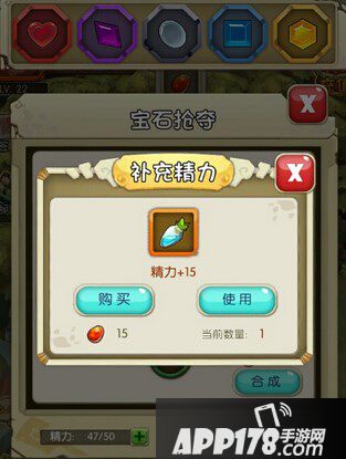 玩家进行宝石碎片抢夺时,需要消耗精力点,精力点与体力点恢复时间相同,都是每30分钟恢复1点,精力点恢复上限为12点,当角色精力点已为12点时将不再继续恢复。如果觉得精力恢复过慢,也可以消耗钻石购买精力药进行快速恢复,每瓶精力药可以瞬间恢复8点精力。