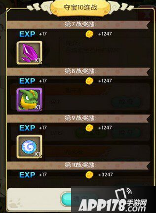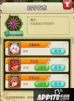 在抢夺页面,还可以进行十连夺哦!十连夺不仅可以获得宝石碎片,还可以获得紫宠、魂点、宝箱等道具。不过,当抢夺到相应的宝石碎片时,十连夺就会停止哦。
