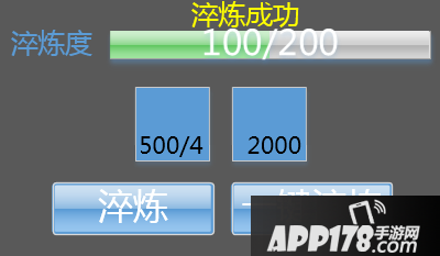 在淬炼度进度条出显示“淬炼成功”文字,飘字效果