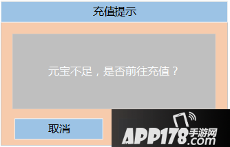 如果元宝不足,弹出充值确认界面