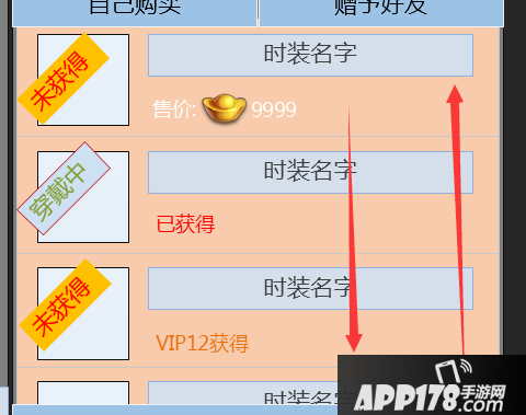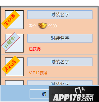 图标上有 未获得 和 穿戴中两个标示图形