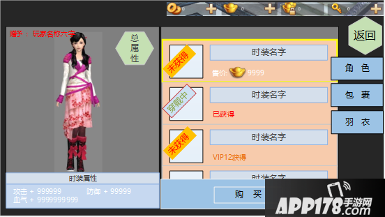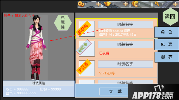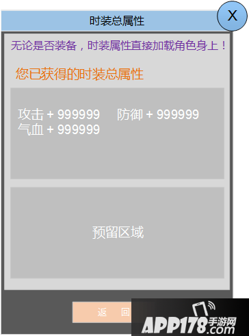 本版本时装只提供: 攻击 防御 气血3种属性。