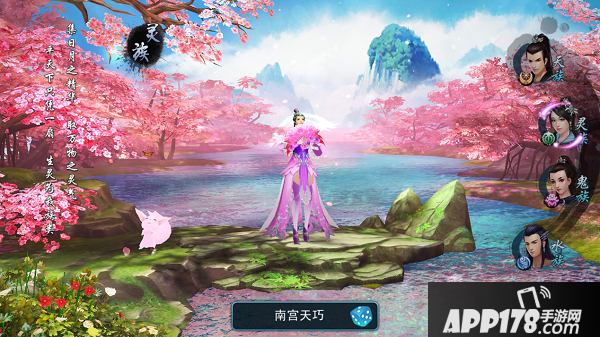 通关后角色会跳转到主界面,这里要特别说明一下,《三生三世十里桃花》游戏中设定为每个不同种族都有自己的居住地,这里已灵族为例,灵族的居住地“仙瑞灵居”,每次重新登陆游戏,角色都会显示在居住地。