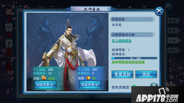 战神圣殿:每天可以对战神进行供奉,除此之外还可以进行挑战,开启时间则由会长决定。