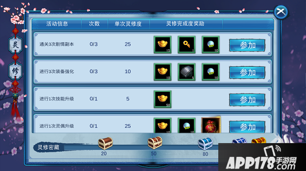 日常活动及活跃度礼包的领取,每达到一定活跃度可以领取相应的奖励,完成全部活跃度可获得丰富的奖励和经验,灵修系统每日24:00重置。