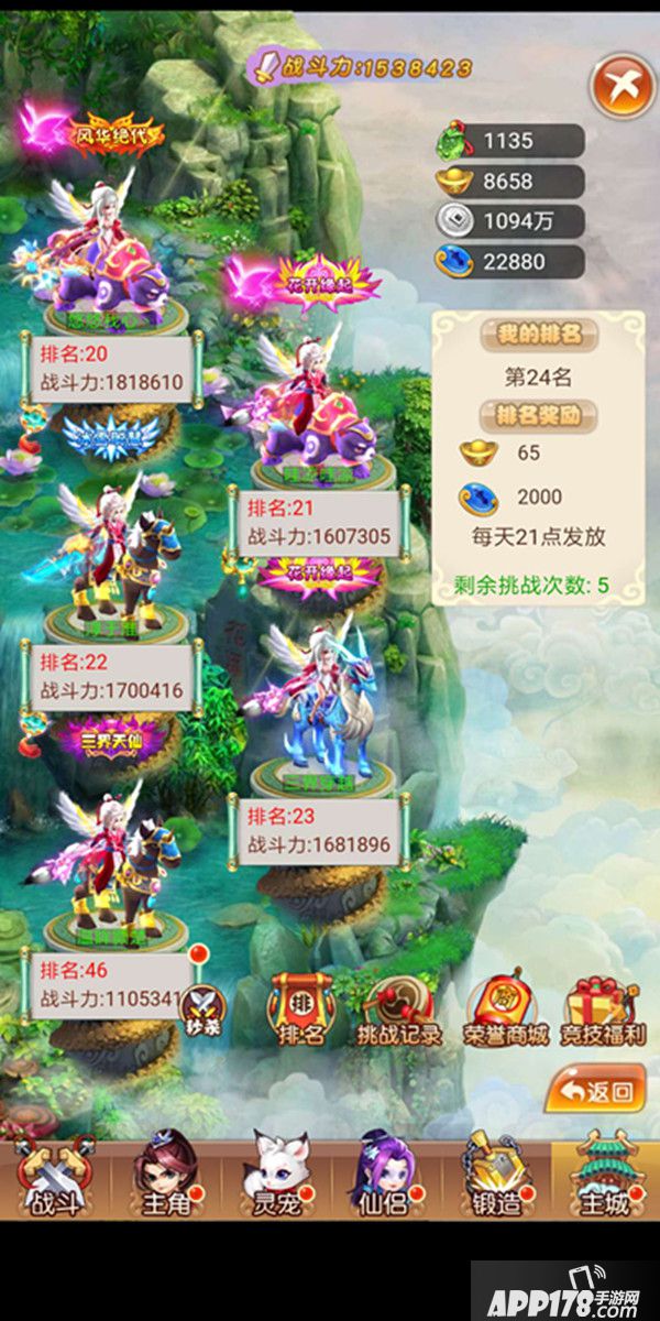 玩家们可以在主界面下方的主城界面中看到“竞技”玩法的入口,点击后进入竞技玩法界面。玩家可以在竞技场中挑战排名靠前的玩家,战胜对手后可以取代对方的名次。玩家每日可以随着排名的提升,玩家也可以获得更多的排名结算奖励。