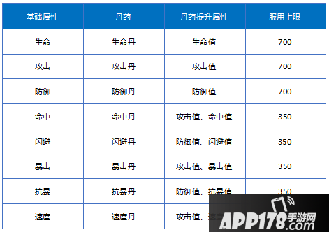 当玩家获得任意丹药后,复用丹药即可提升对应的属性值,并且每种丹药有一定的服用上限,具体可见下表: