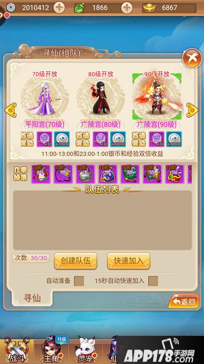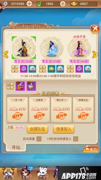 另外还需要注意的一点,组队副本在每天固定时间段11:00-13:00和23:00-1:00产出的银币和经验双倍,而且,每天完成10次组队副本,还可以获得额外的日常任务奖励(寻仙任务),所以追求高收益的玩家,一定不要错过。
