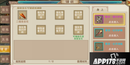 1、装备镶嵌可以在装备上镶嵌宝石。