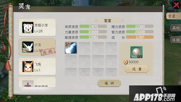 好不容易获得了自己喜欢的灵宠,可资质、属性却不尽人意,怎么办?可以试试宠物还童功能!