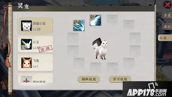 剑侠还可通过技能摘取功能,摘取灵宠已学会的技能,摘取需要消耗对应技能品质的空白技能书。摘取完成后的技能数可用于其他灵宠学习此技能。