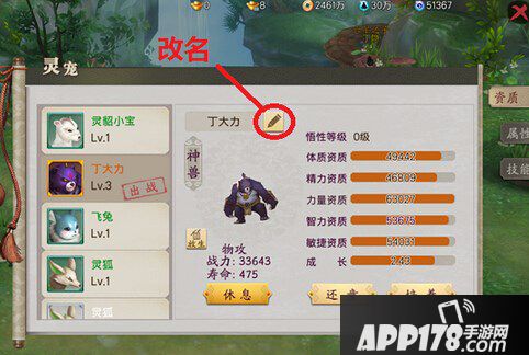 1.改名:玩家可以根据喜好为宠物改名,6个字的长度相信足以为您的宠物起一个霸气侧漏的名字。