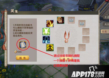 技能书的摘取是随机的,高级技能书能摘取高,中,低级技能,而低级技能书只能摘取低级技能,下面将列出常见的技能供大家参考。技能主要分为给主人提供一定的增益与给灵宠自身提供增益两种。大多技能也对应有高,中,低三种品级之分,同种技能等级越高相应的增益系数N越高。