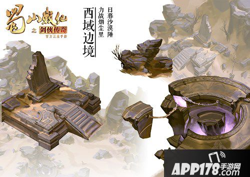 在概念图中,这里作为游戏中的公共边境,黄沙蔽日,触目所及皆被黄沙所覆盖,战争时留下的断壁残垣,更是为这里再加上几分萧条的色彩。然而,这样看似荒无人烟的地方却依然暗藏杀机。逍遥、纵横、天命三大阵营的势力纠集在此,暗中部署,蠢蠢欲动,战争一触即发。