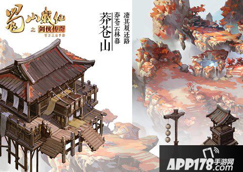 在概念图,蜀山剑派悬浮于半空之间,气势磅礴。周围剑阵环绕,也对应其“万剑归宗,尽在蜀山”的江湖地位。同时,游戏中还还原了如倒映桥等剧中诸多经典元素,融情于景,既保有蜀山仙境般的如画风景,又有着与蜀山仙侠故事剧情紧密联系的物是人非之感。