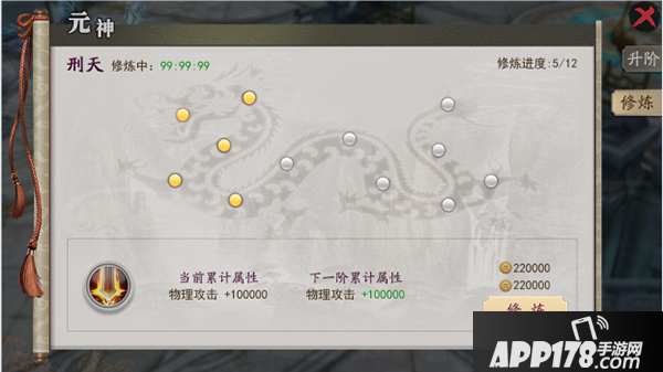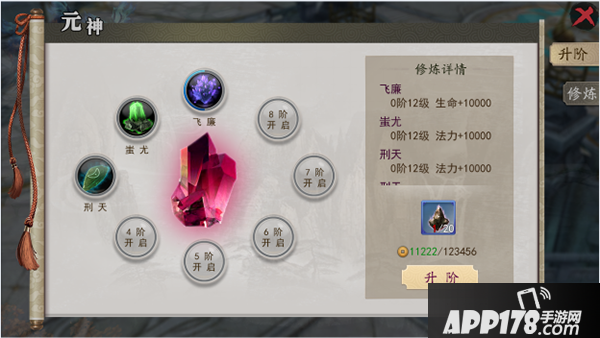 当玩家修炼完某一元神中的所有神魂之后,可使元神进阶,进阶成功后玩家不仅可获得大量属性加成,还可继续修炼更加强力的神魂。